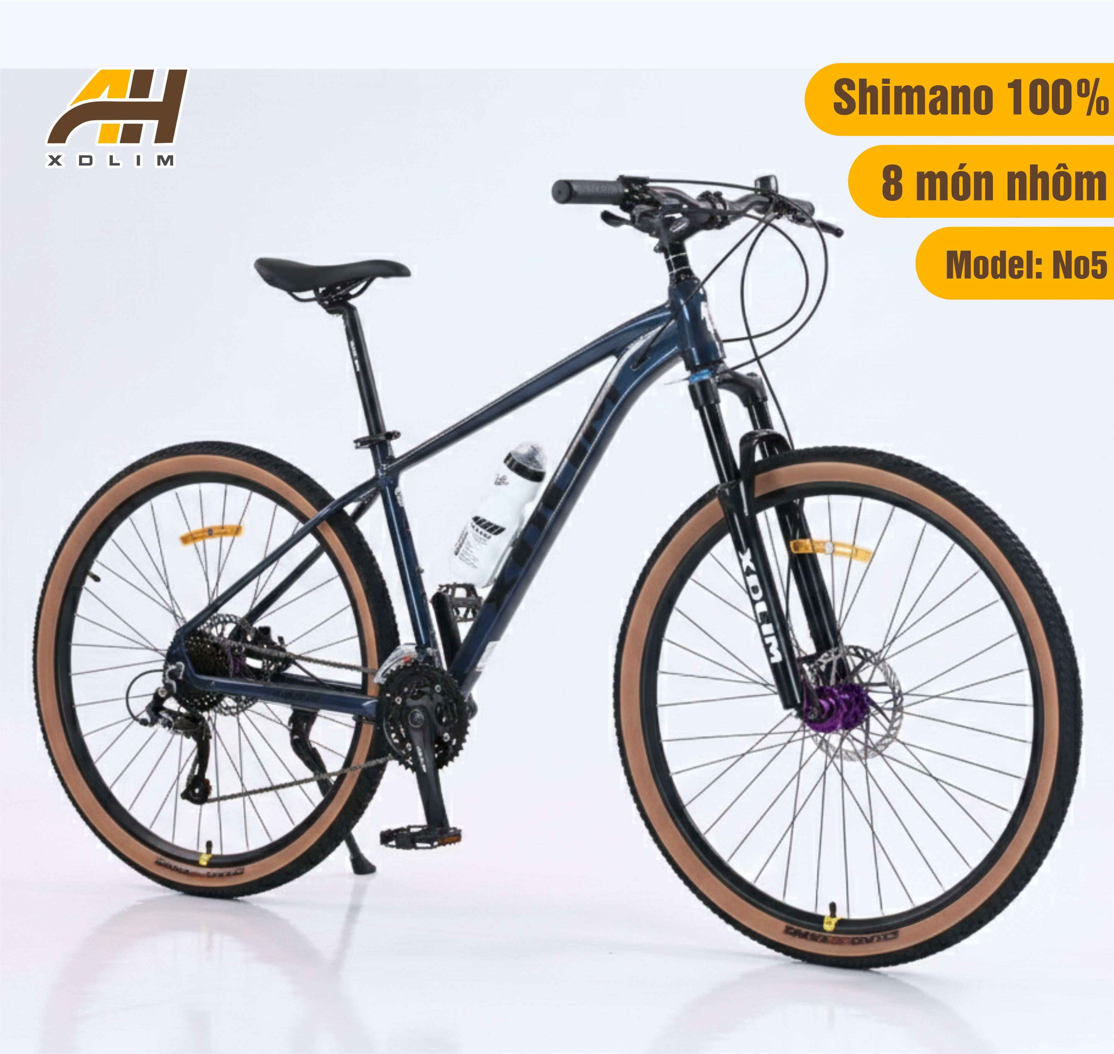 Khung nhôm chắc chắn và các linh kiện chất lượng cao từ Shimano cho phép XDLIM NO5 dễ dàng vượt qua mọi địa hình gồ ghề, từ những con đường nhựa phẳng mịn cho đến những cung đường mòn đầy thử thách. Đây thực sự là một người bạn đồng hành tuyệt vời cho những ai yêu thích sự mạo hiểm và muốn trải nghiệm những cung đường mới.
